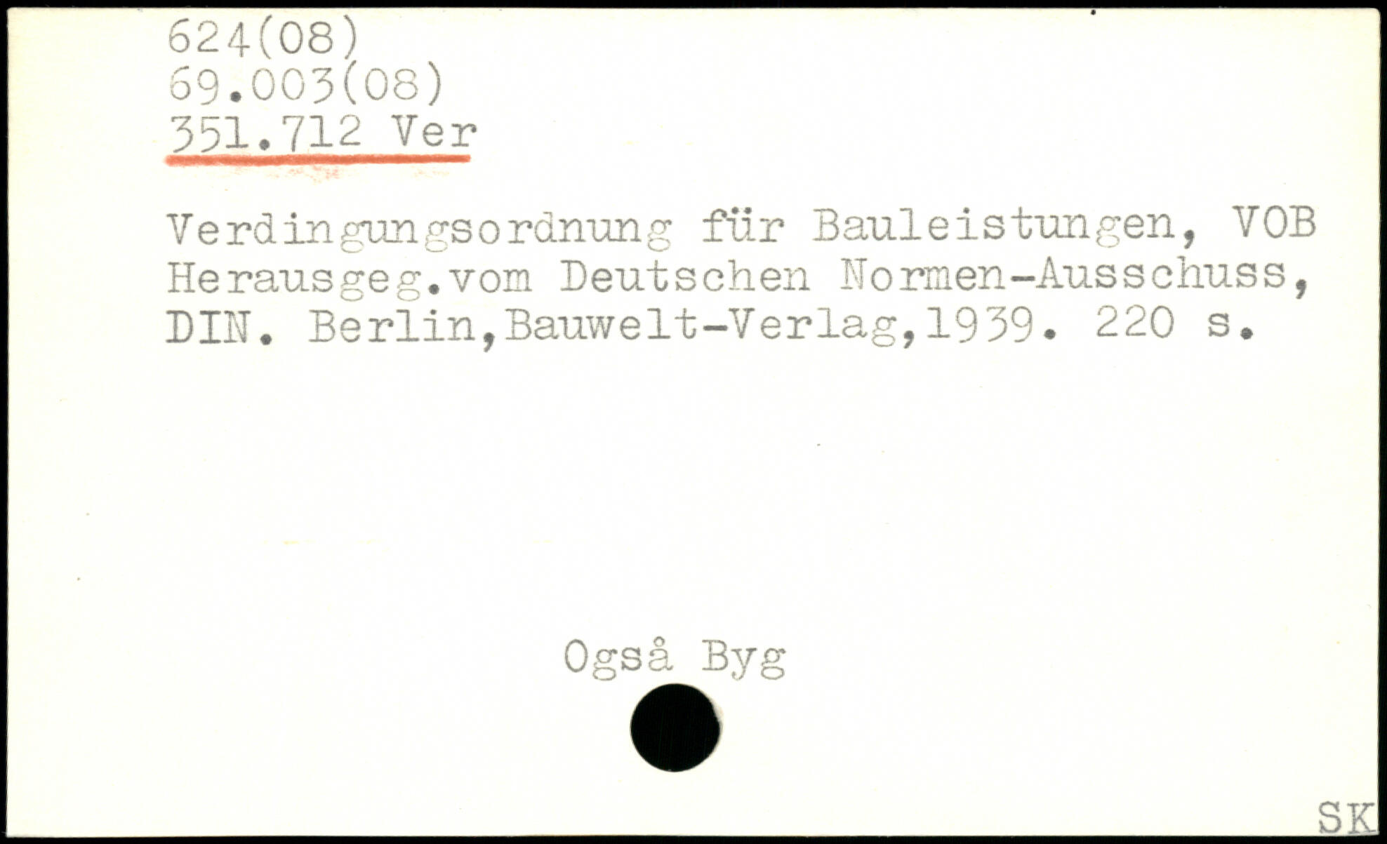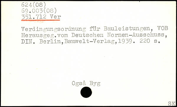 Verdingungsordnung für Bauleis tun gen, YOB Herausgeg.vom Deutschen Normen-Ausschuss, DIN.