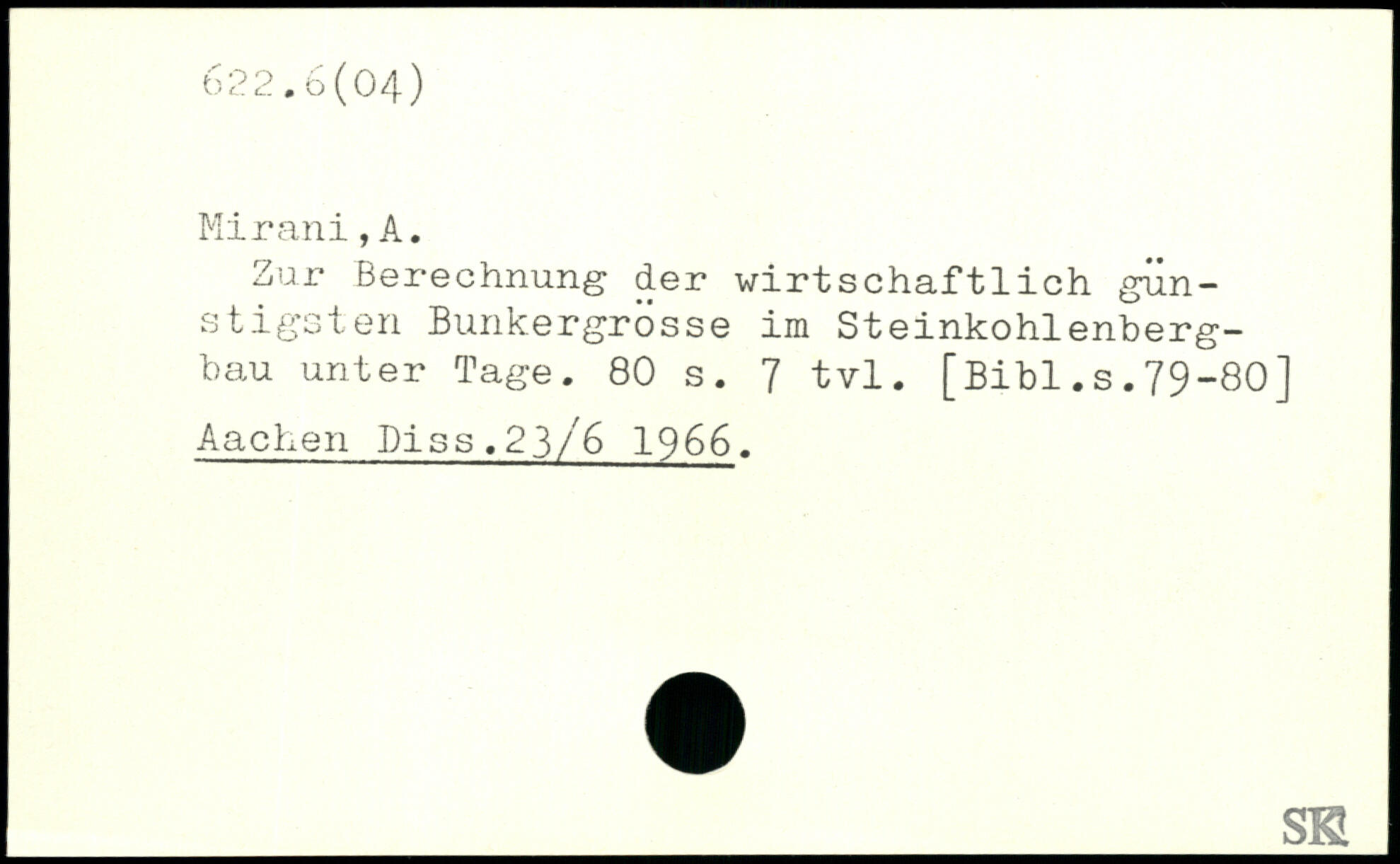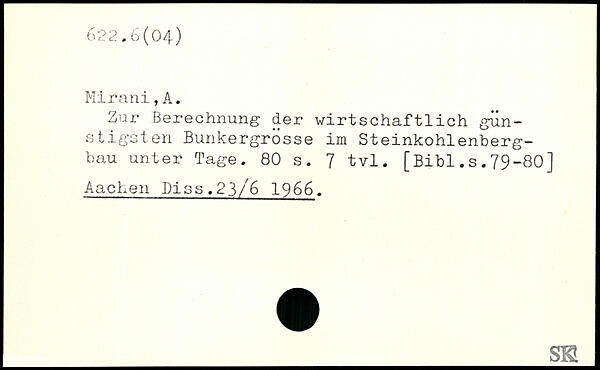 Zur Berechnung der wirtschaftlich günstigsten Bunkergrosse im Steinkohlenbergbau unter Tage.