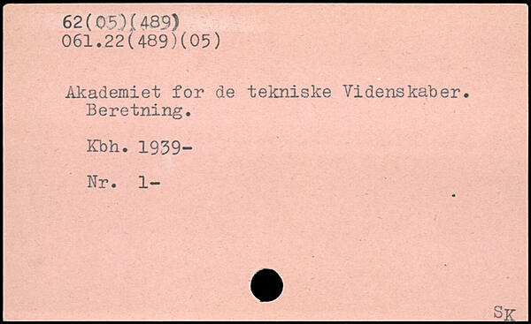 Akademiet for de tekniske Videnskaber. Beretning. Kbh. 1939- Nr. 1-
