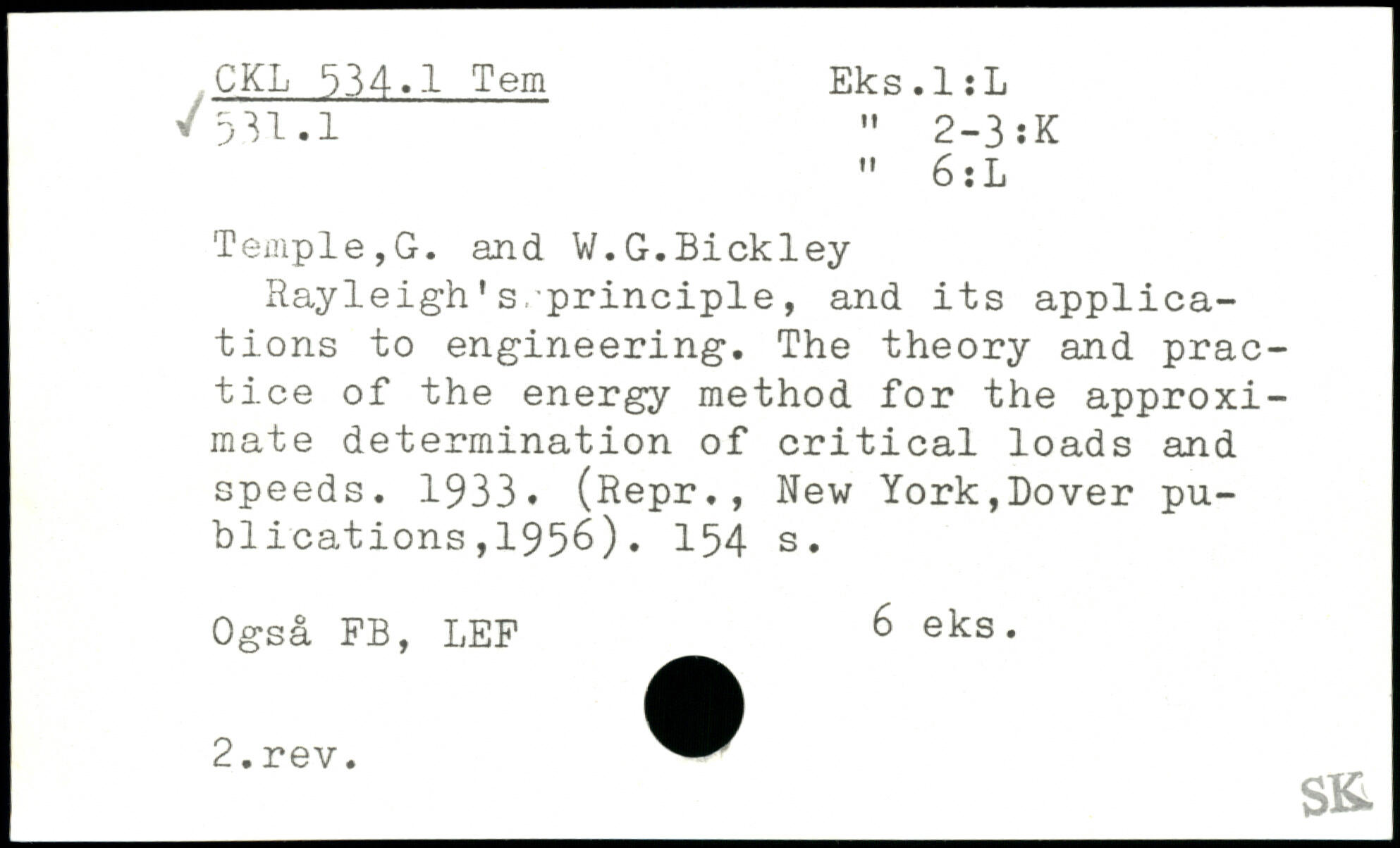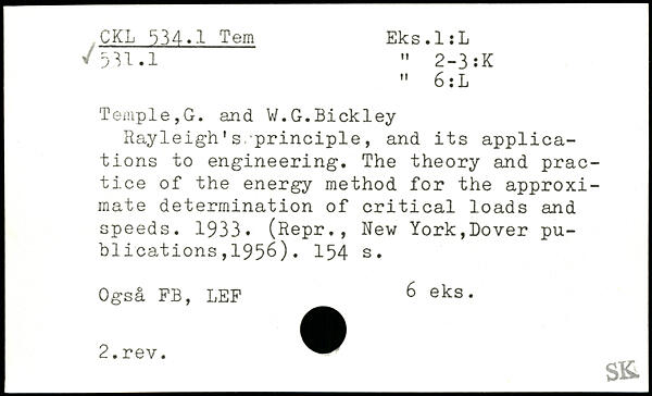 Rayleigh's,-principle, and its applications to engineering. The theory and practice of the energy method for the approximate determination of critical loads and speeds. 1933. (