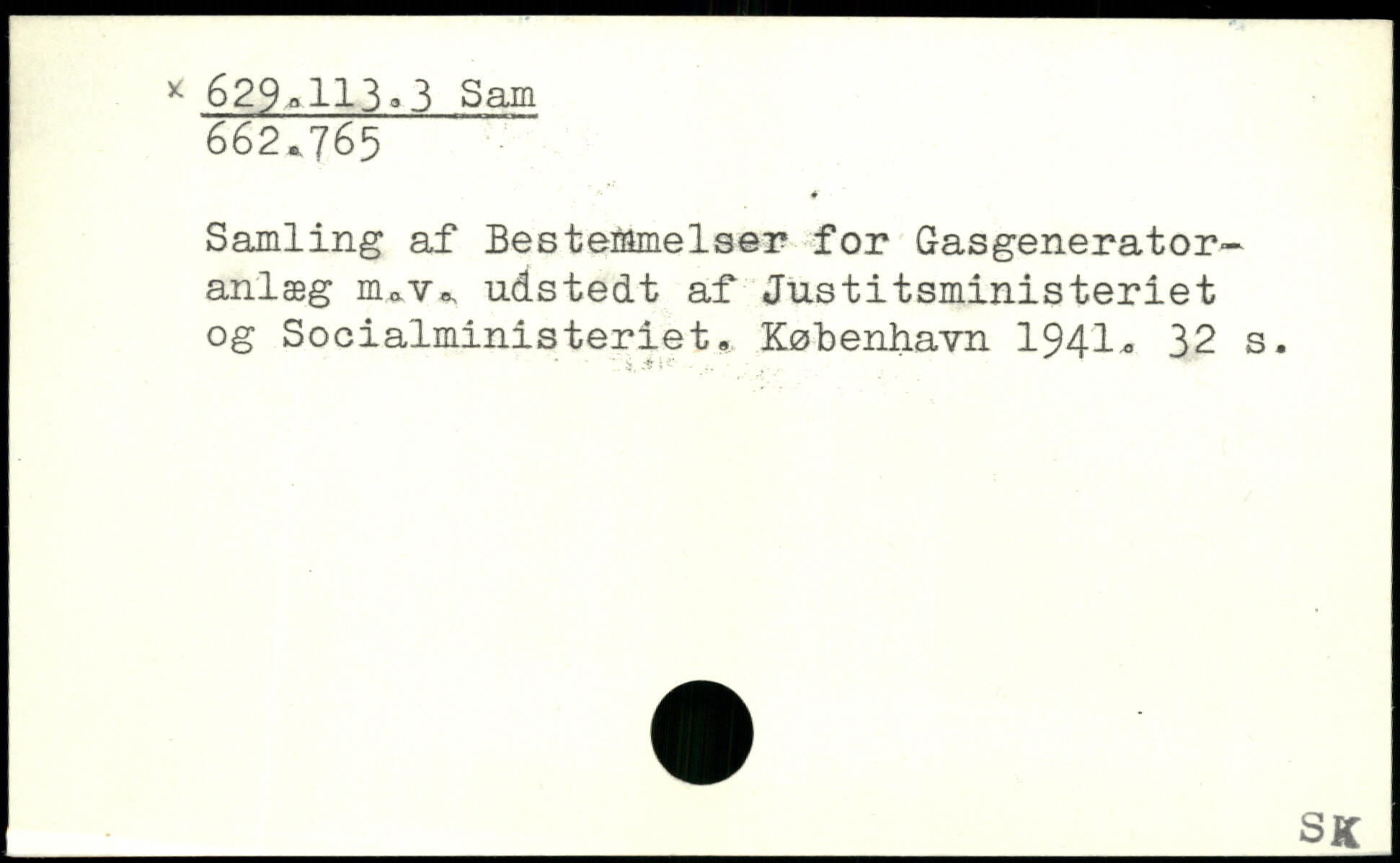 Samling af Bestemmelser for Gasgenerator-anlæg nuv, udstedt af Justitsministeriet og Socialministeriet, København 194-1.