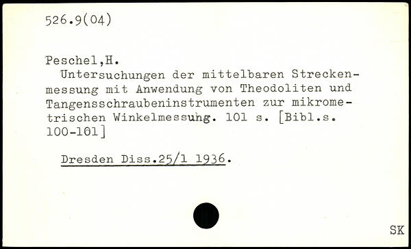 Untersuchungen der mittelbaren Streckenmessung mit Anwendung von Theodoliten und Tangensschraubeninstrumenten zur mikrometrischen Winkeimessung.