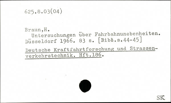 Untersuchungen über Fahrbahnunebenheiten. Dusseldorf 1966