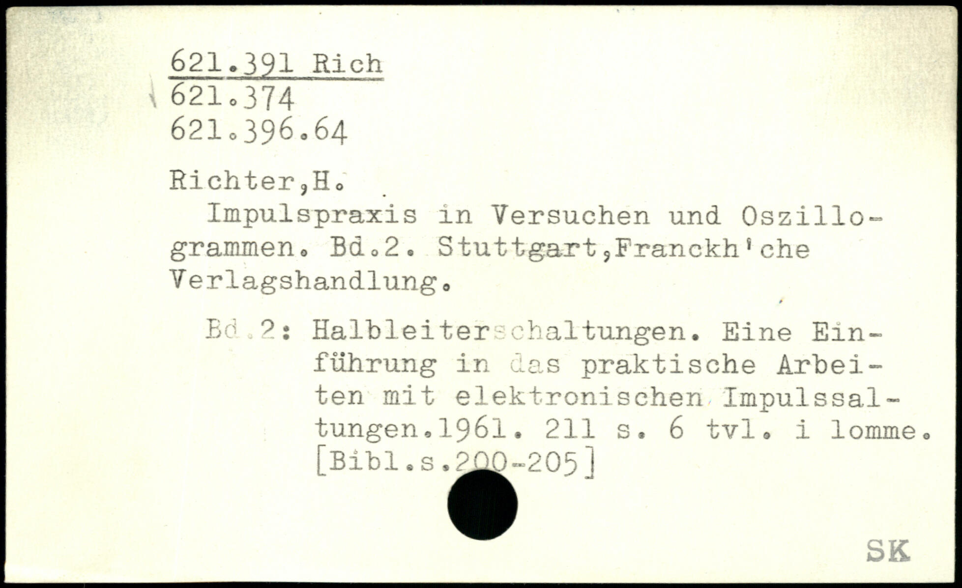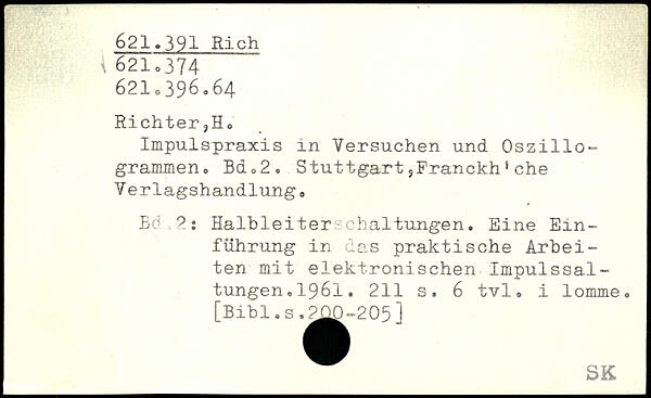 Richter ?Ho Impulspraxis in Versuchen und Oszillo-grammen. Bd<>2. Stuttgart,Franckh'che Verlagshandlung. Ed 2: Halbleiterachaltungen. Eine Einführung in das praktische Arbeiten mit elektronischen Impulssal-tungen.1961.