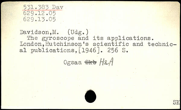 The gyroscope and its applications. London,Hutchinson's scientific and technical publications,[1946].