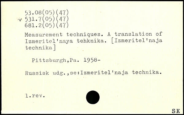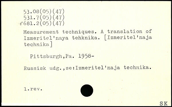 Measurement techniques. A translation of Izmeritel'naya tehknika.