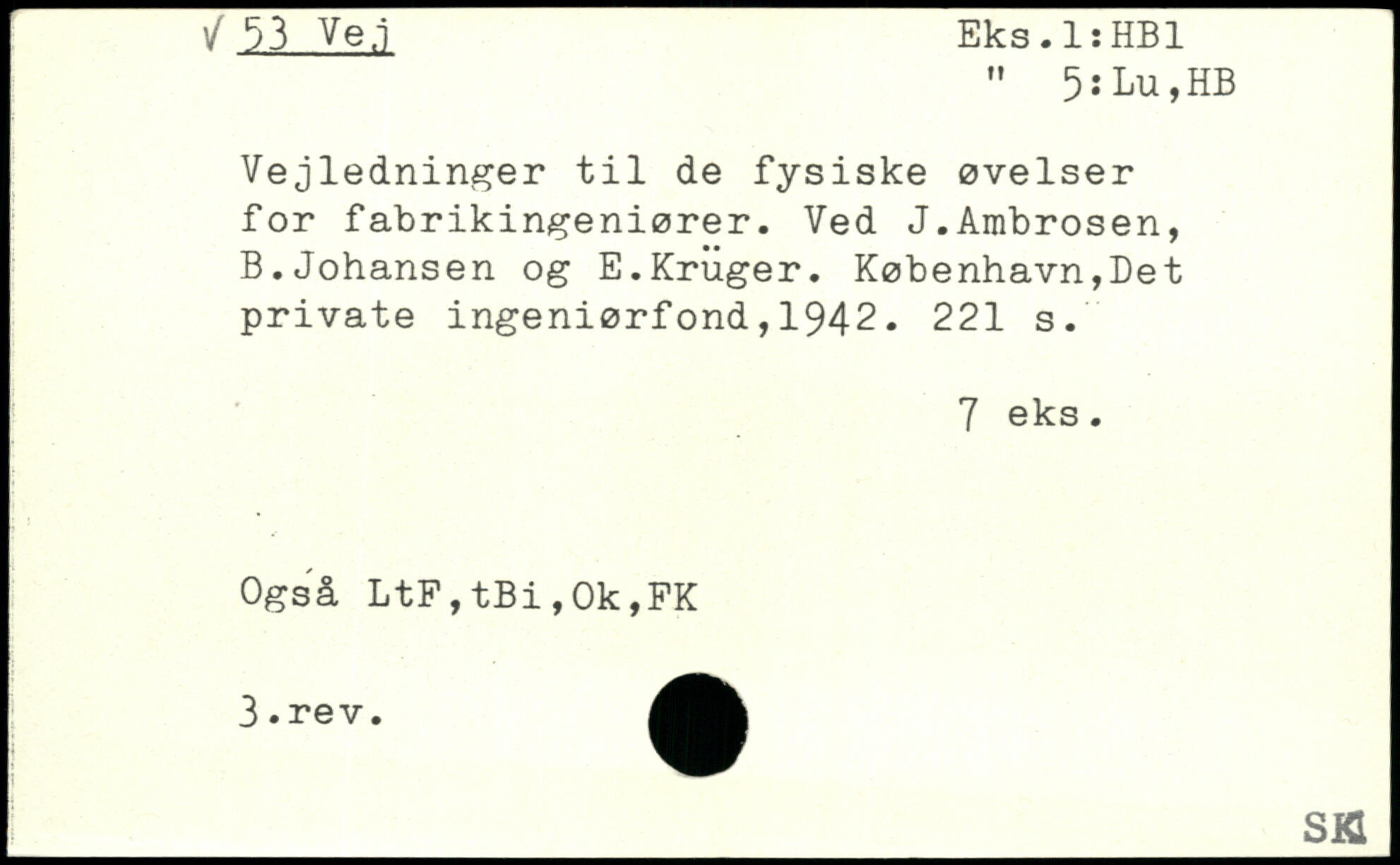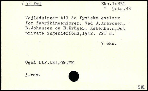 : Vejledninger til de fysiske øvelser for fabrikingeniører. Ved J.Ambrosen, B. Johansen og E.Kriiger.