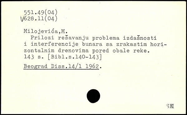Prilozi resavanju problema izdasnosti i interferencije bunara sa zrakastim hori-zontalnim drenovima pored obale reke. I