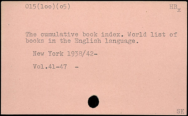 The cumulative book index. World list of books in the English language. Hew York 1933/42-