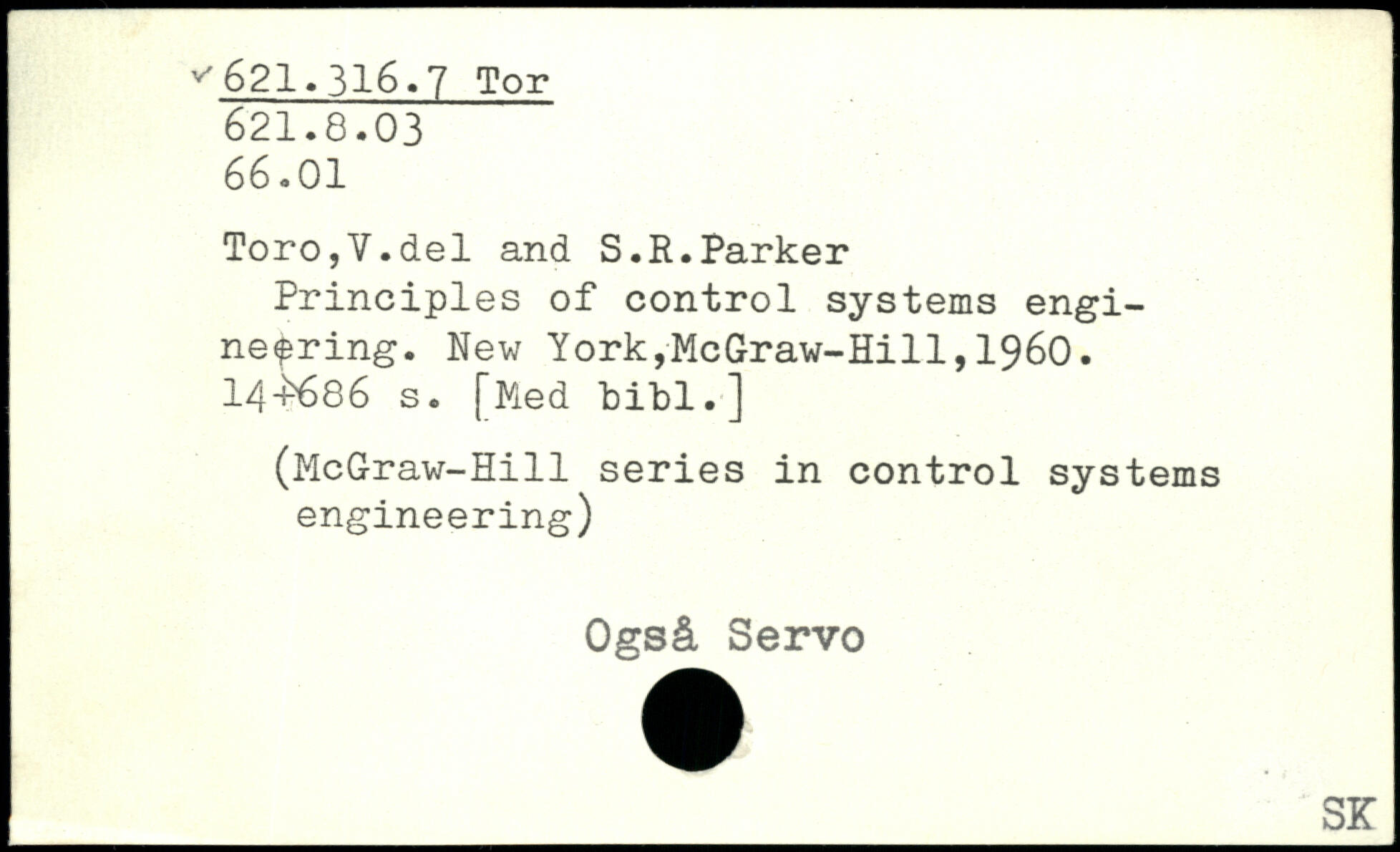 Toro,Y.del and S.R.Parker Principles of control systems engineering.