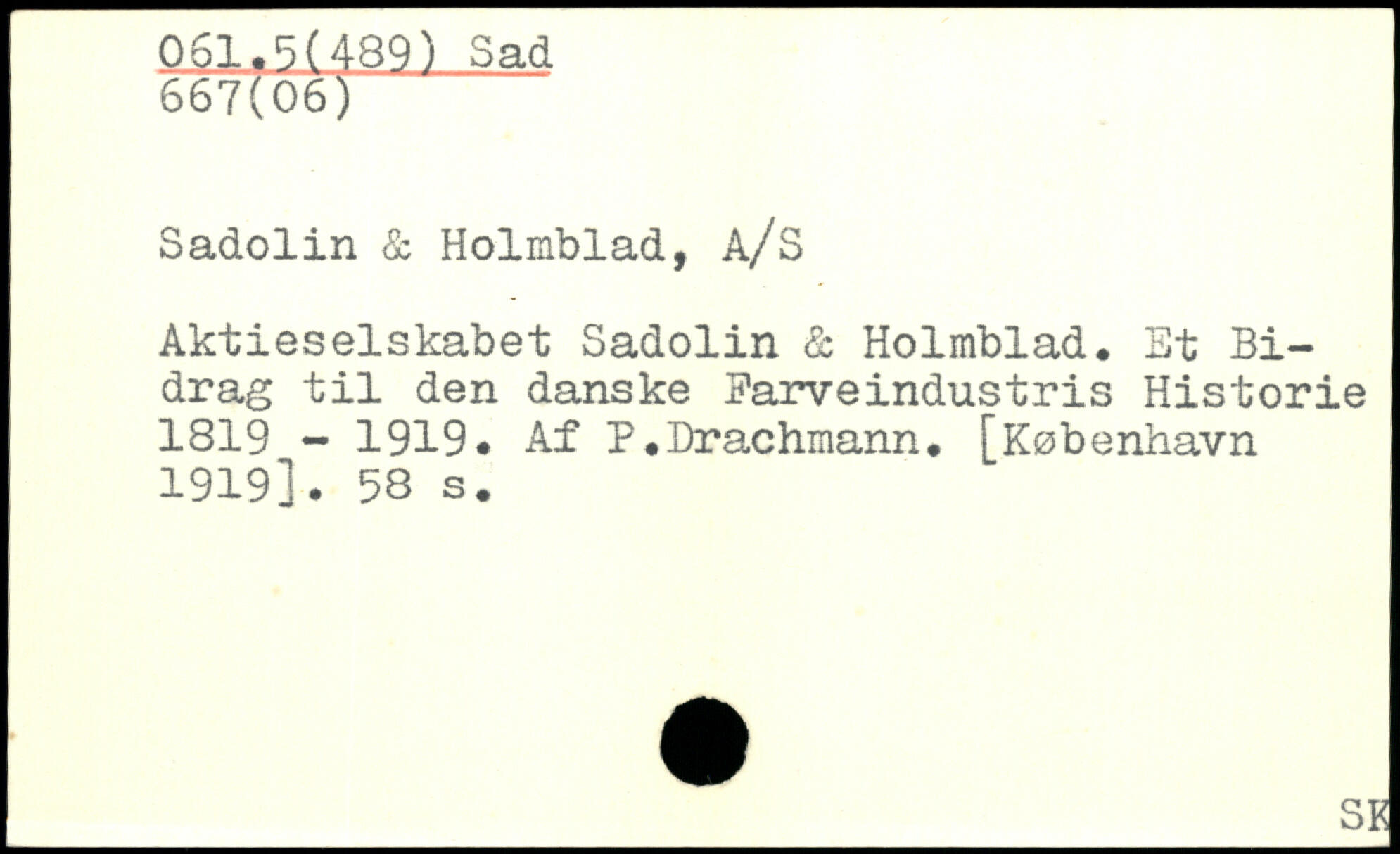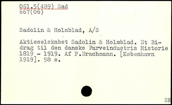 Aktieselskabet Sadolin & Holmblad. Et Bidrag til den danske Parveindustris Historie 1819 - 1919. Af P.Drachmann.