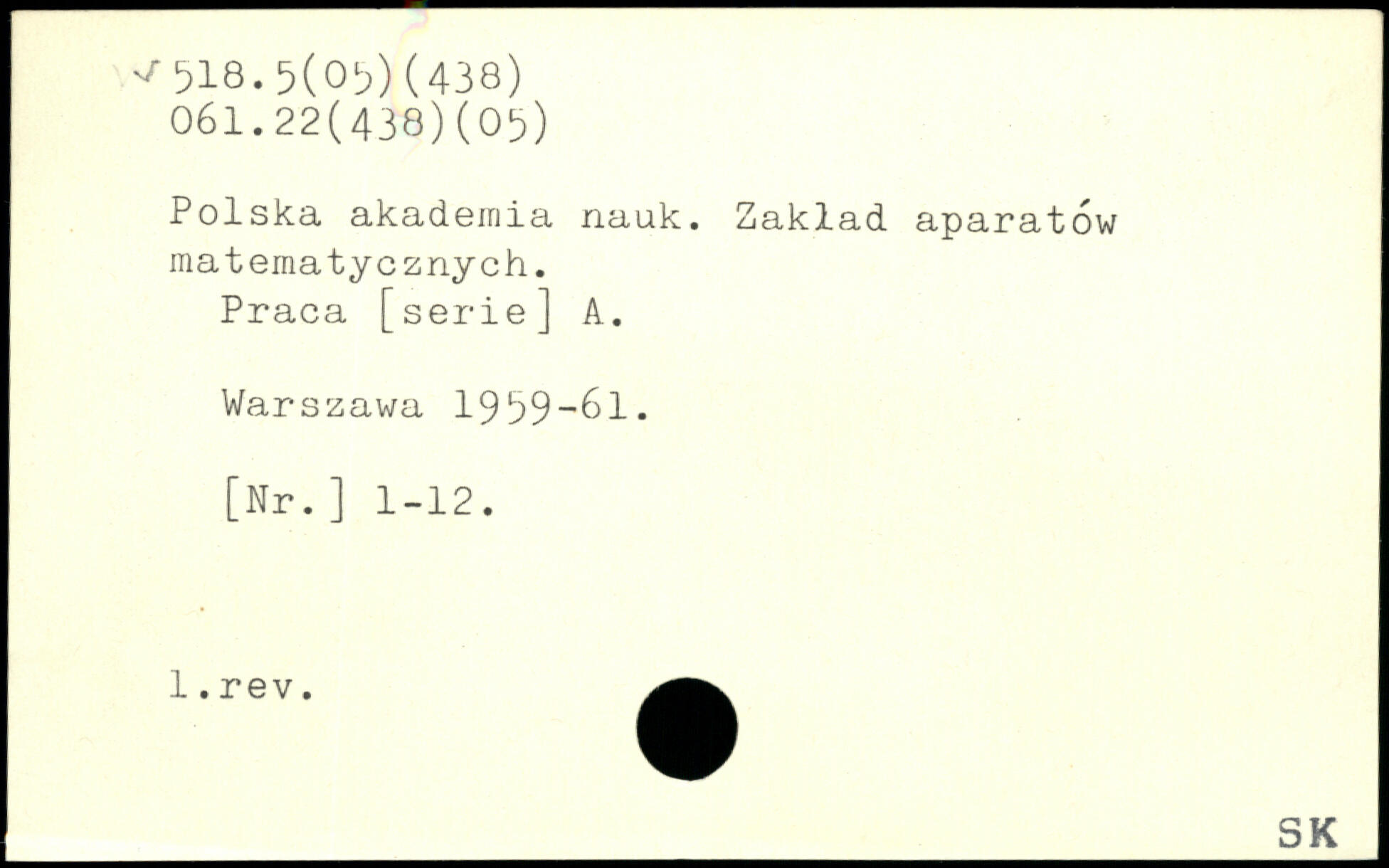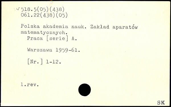 Polska akadejriia nauk. Zaklad aparatow matematycznych. Praca [serie] A.