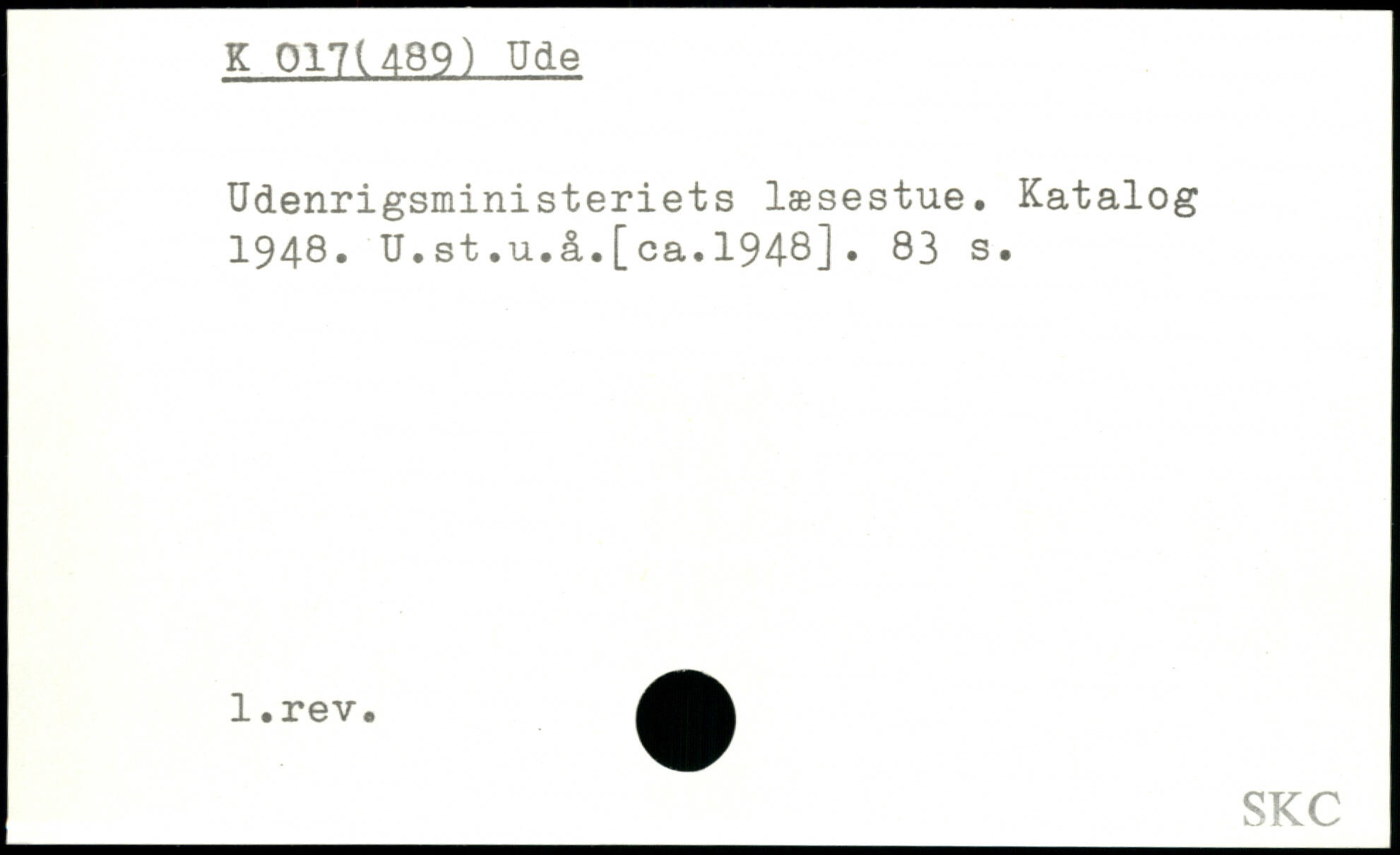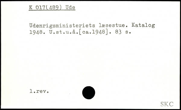 Udenrigsministeriets læsestue. Katalog 1948, U.st.u.å.[ca.1948].