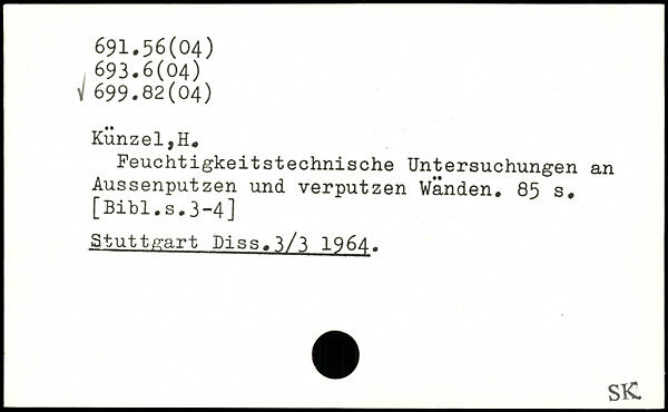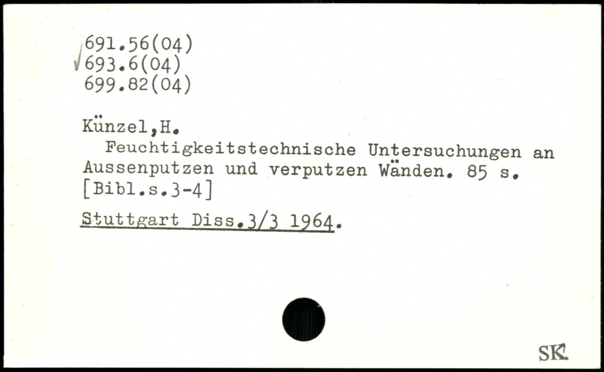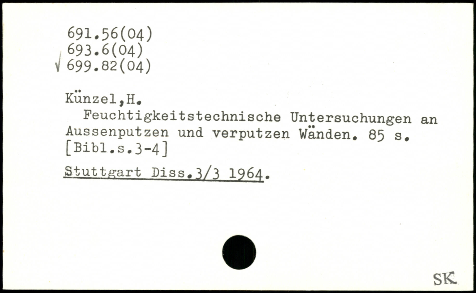 KÜnzel,H# Feuchtigkeitstechnische Untersuchungen an Aussenputzen und verputzen Wanden.