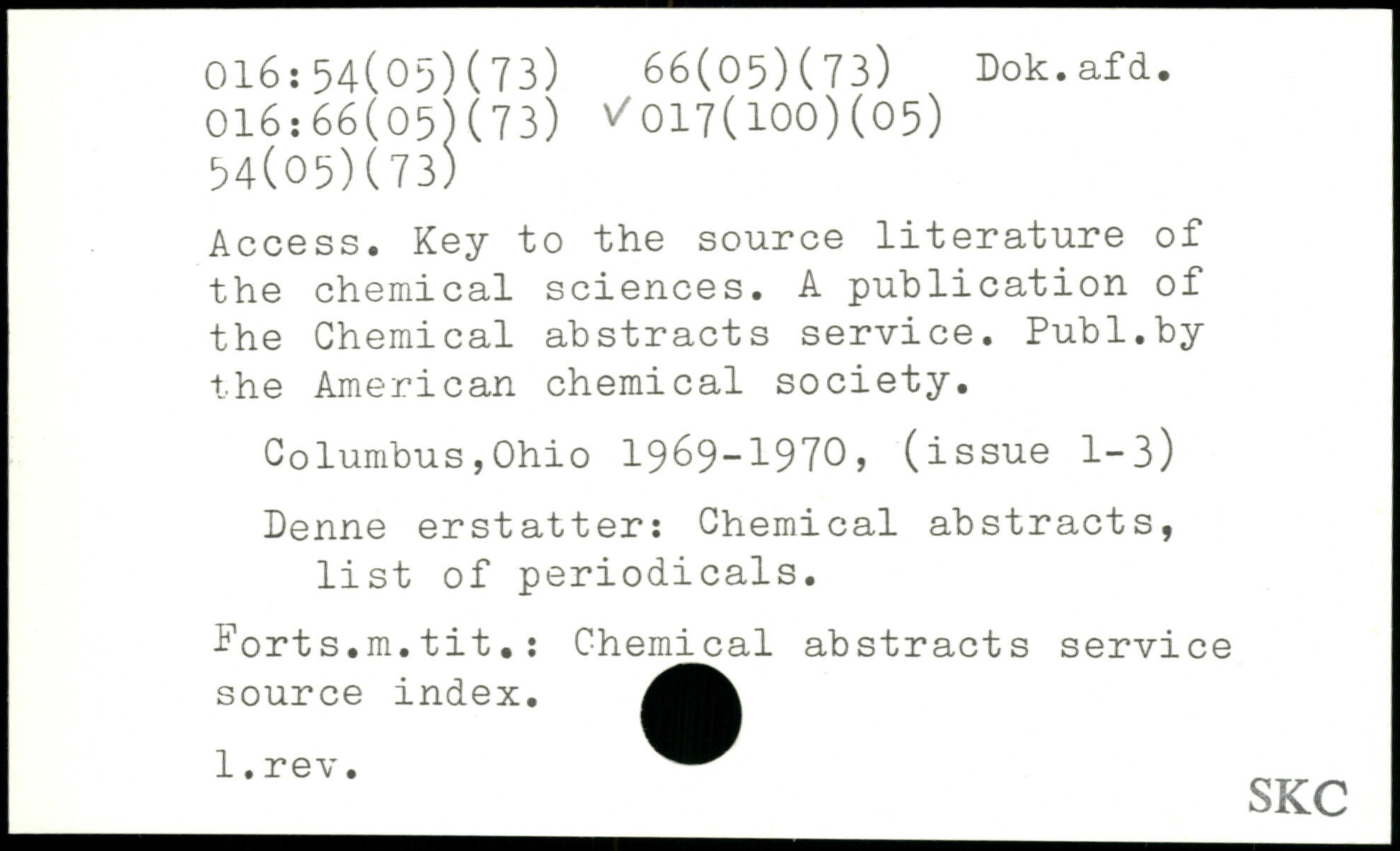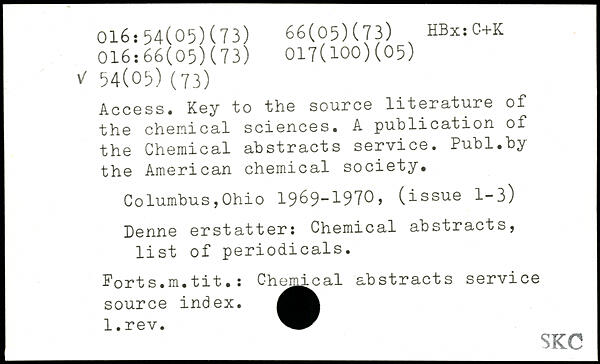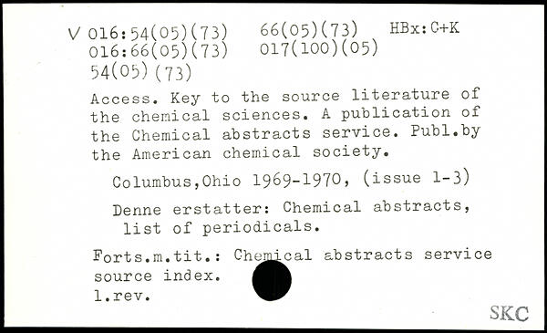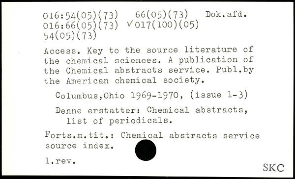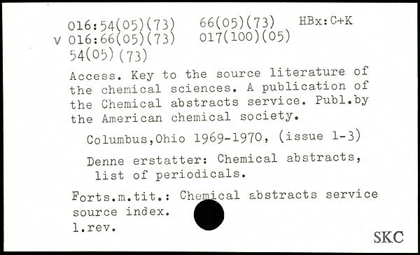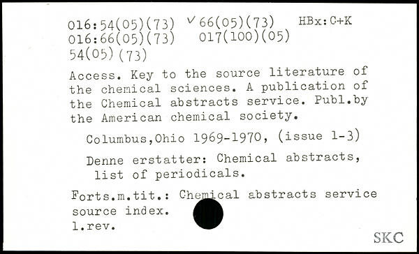 Access. Key to the source literature of the chemical sciences. A publication of the Chemical abstracts service.