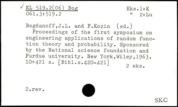 Proceedings of the first symposium on engineering applications of random function theory and probability. Sponsored by the National science foundation and Purdue university.