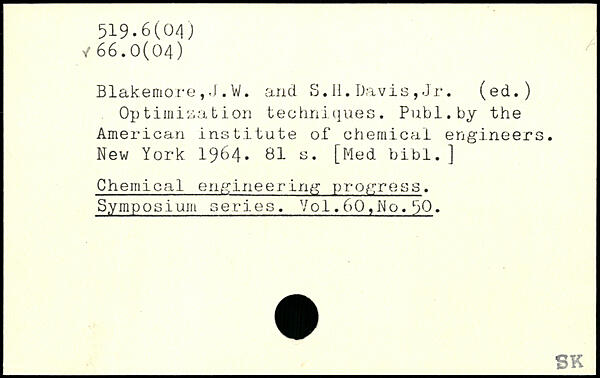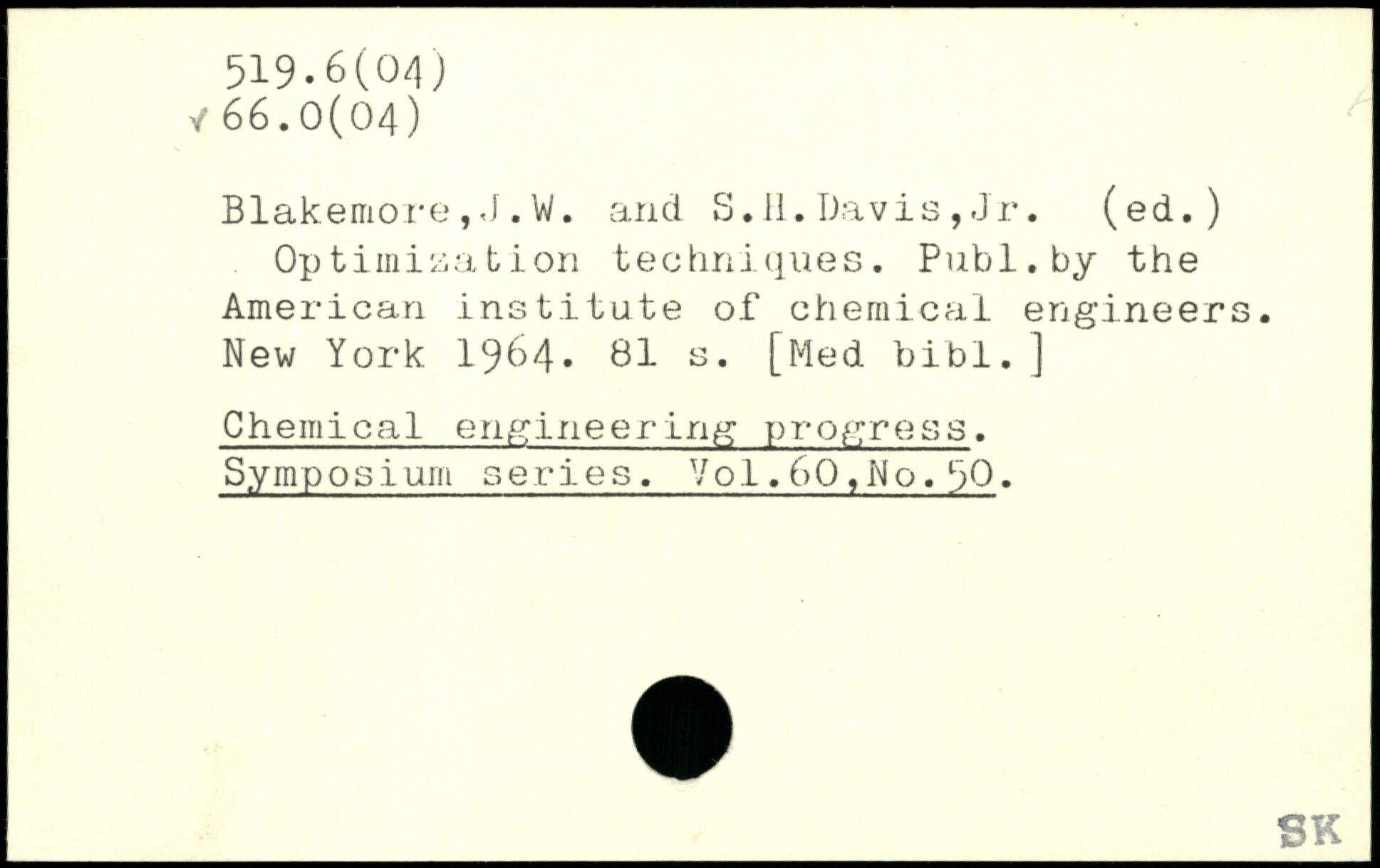 Blakemore, J. W. and S. il. Davis, Jr. (ed.) Optimisation techniques.