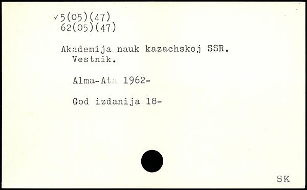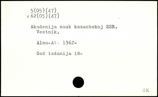 Akademija nauk kazachskoj SSR. Vestnik. Alma-Ata 1962- God izdanija 18-