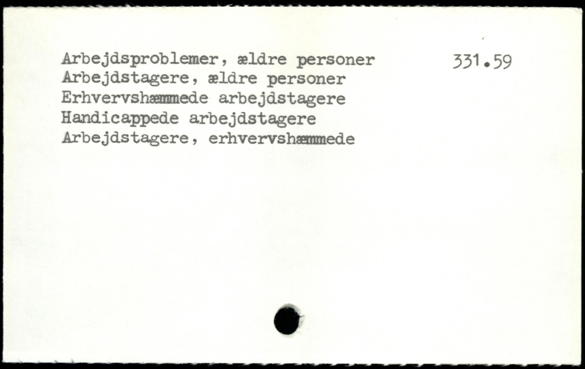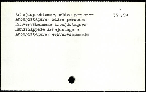 Arbejdsproblemer, ældre personer 331.39 Arbejdstagere, ældre personer Erhvervshæmmede arbejdstagere Handicappede arbejdstagere Arbejdstagere, erhvervshæmmede