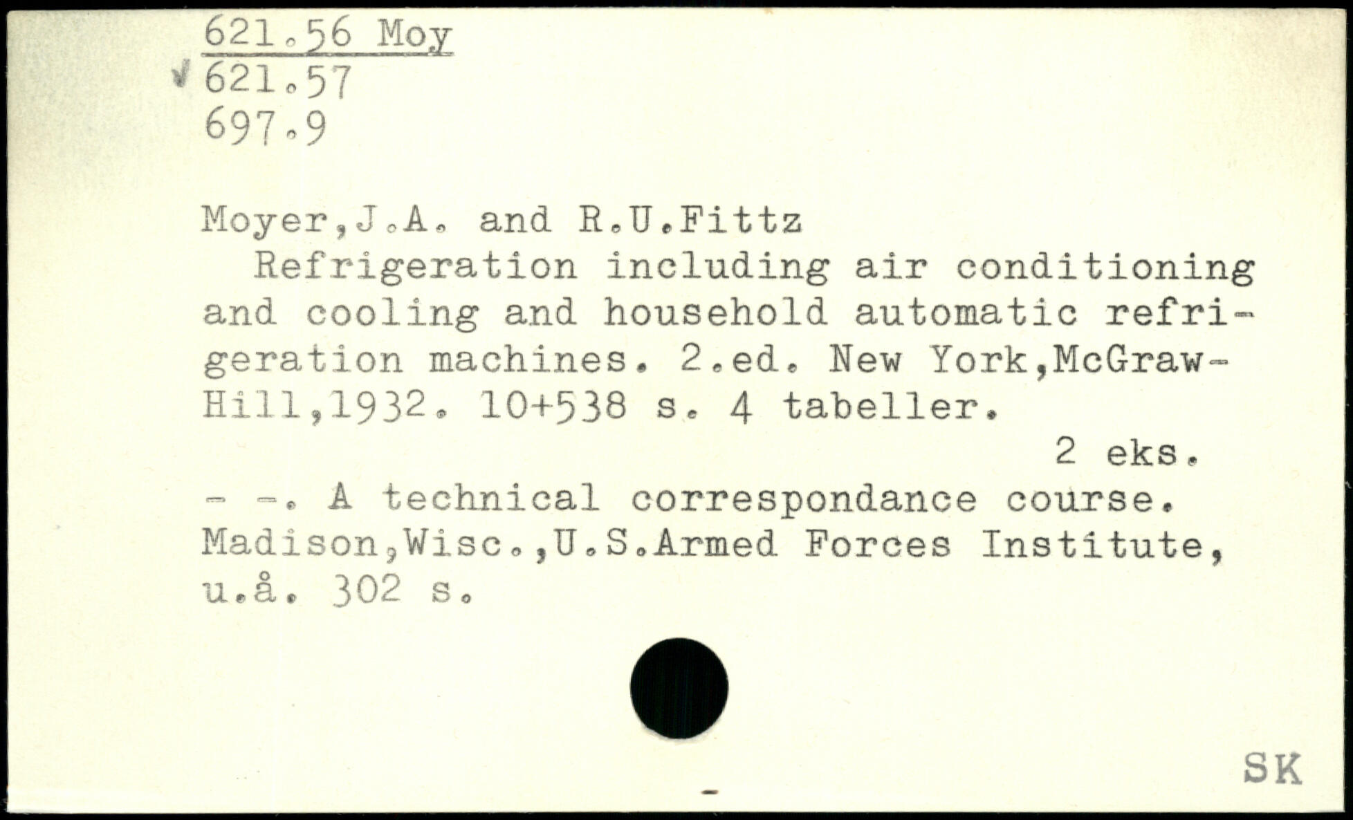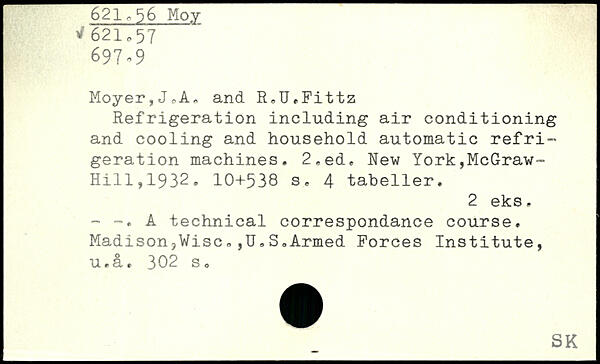 Moyer,JoA-, and R.U.Fittz Refrigeration including air conditioning and cooling and household automatic refrigeration machines. 2,ed