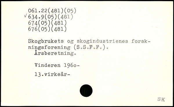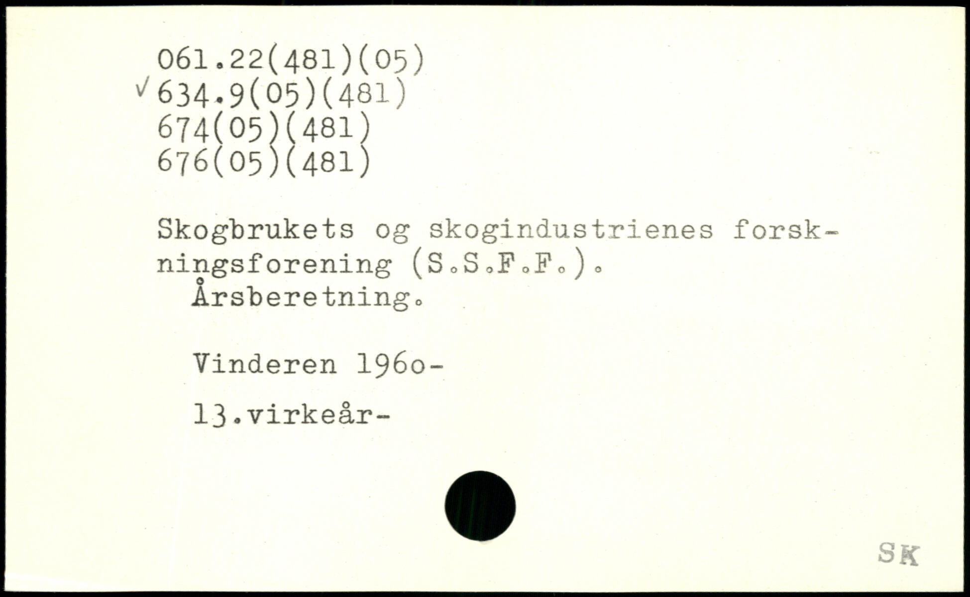 Skogbrukets og skogindustrienes forskningsf orening (SoSoF0Fo)o Årsberetningo Vinderen 1960-13.virkeår-