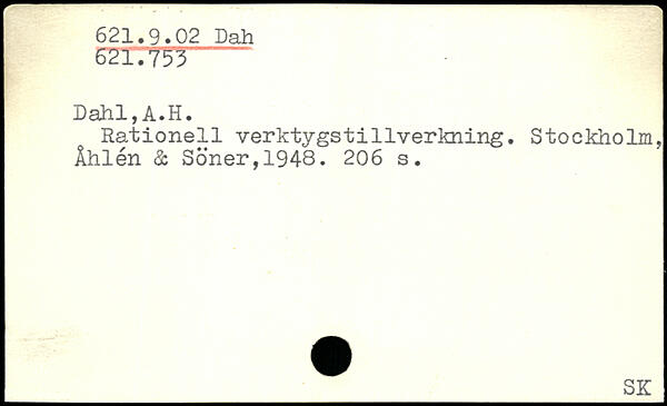 Rationell verktygstillverkning. Stockholm, Åhlén & Söner,1948.