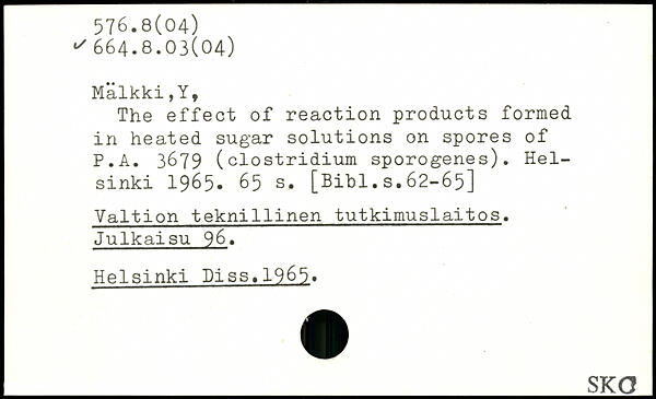 The effect of reaction products formed in heated sugar solutions on spores of P.A. 3679 (clostridium sporogenes).