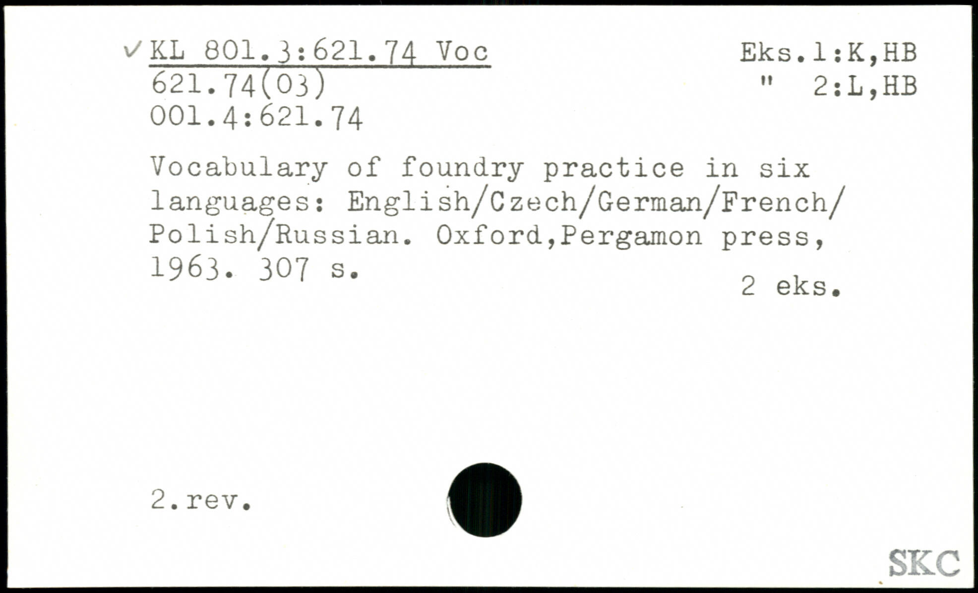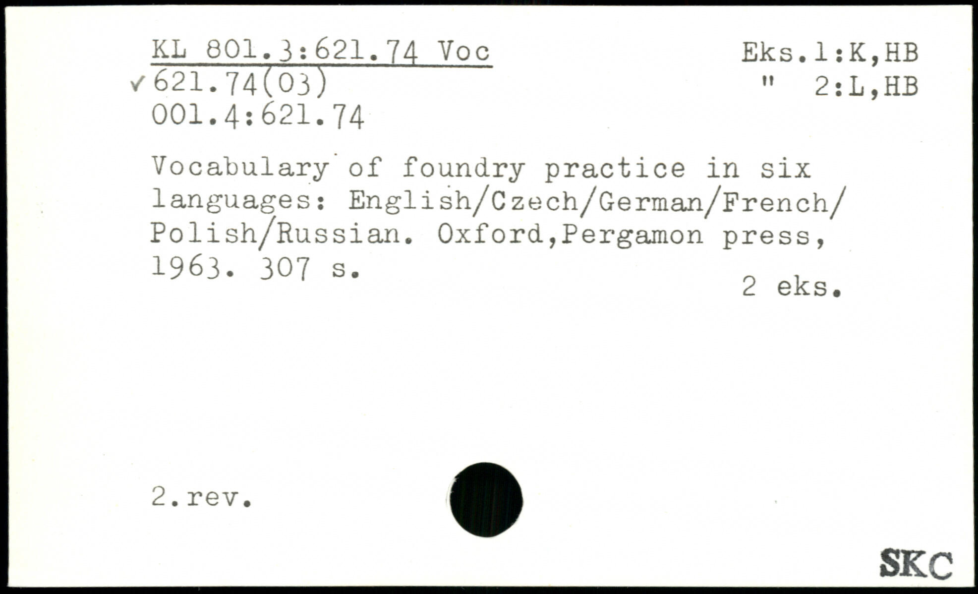 UDK: 801.3:621.74 Voc, 621.74(03), 001.4:621.74