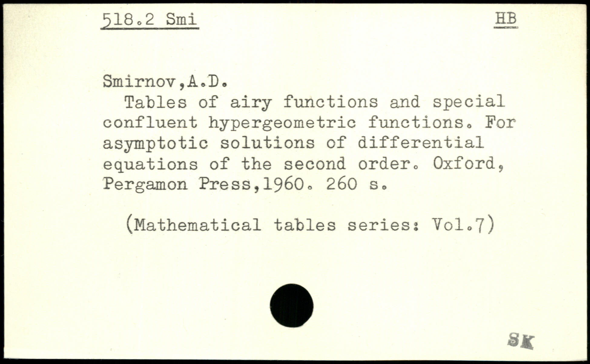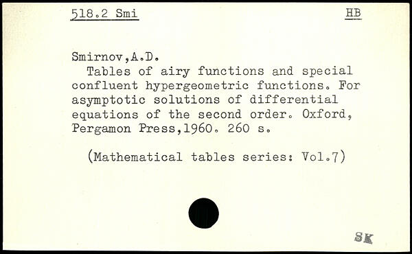 Tables of airy functions and special confluent hypergeometric functions. For asymptotic solutions of differential equations of the second order.