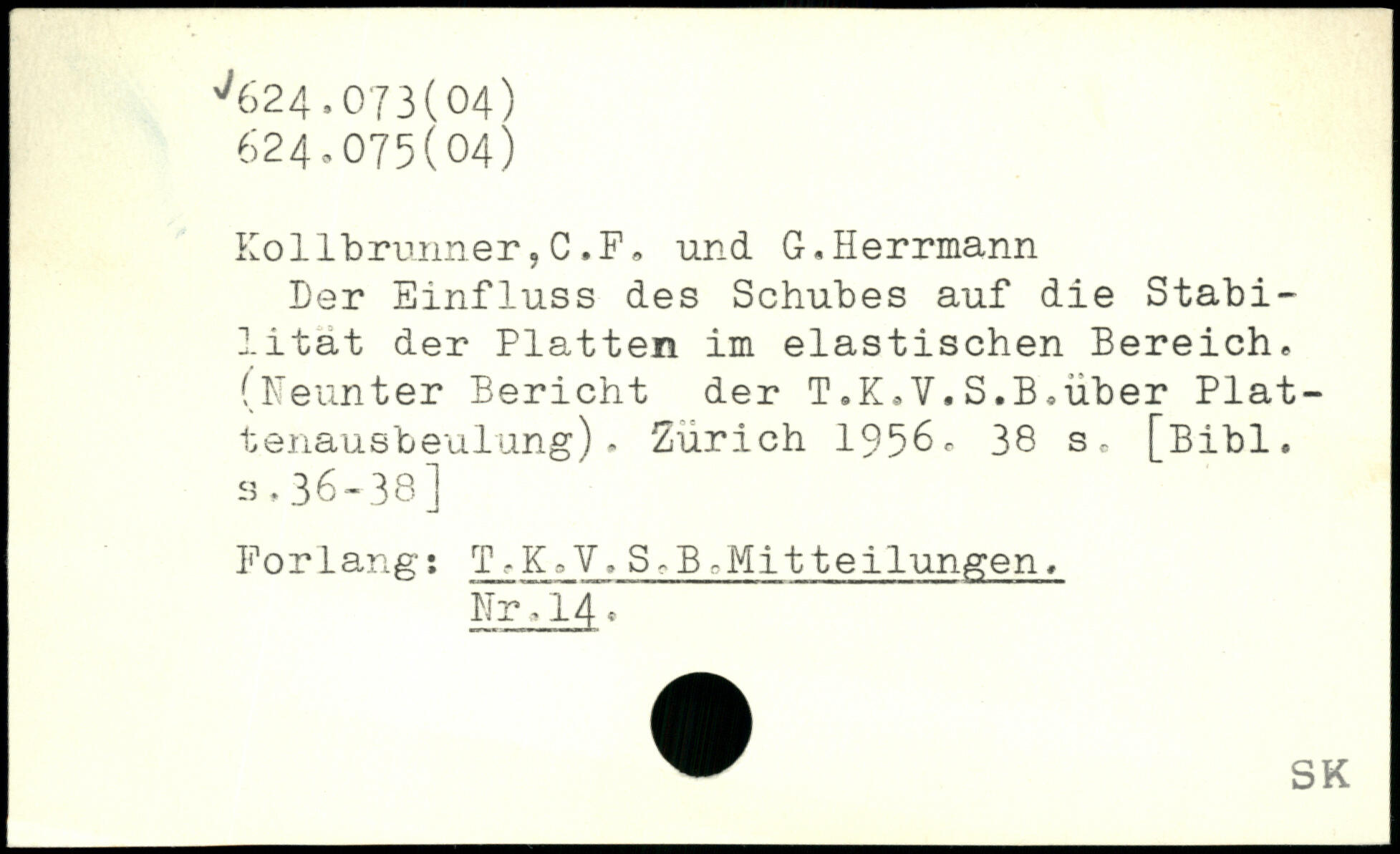 Der Einfluss des Schubes auf die Stabilität der Platten im elastischen Bereich. (Neunter Bericht der T.K.V.S.B.über Plattenausbeulung). Zürich 1956.