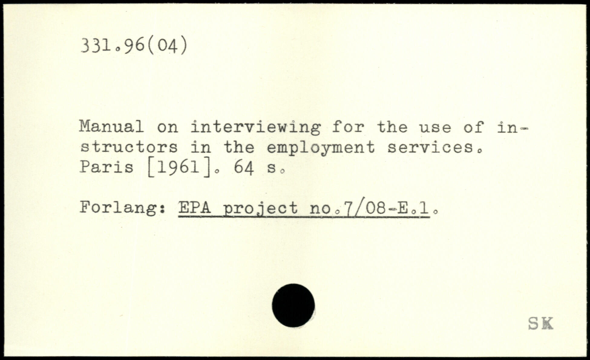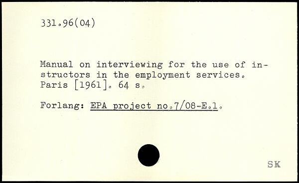 Manual on interviewing for the use of instructors in the employment services