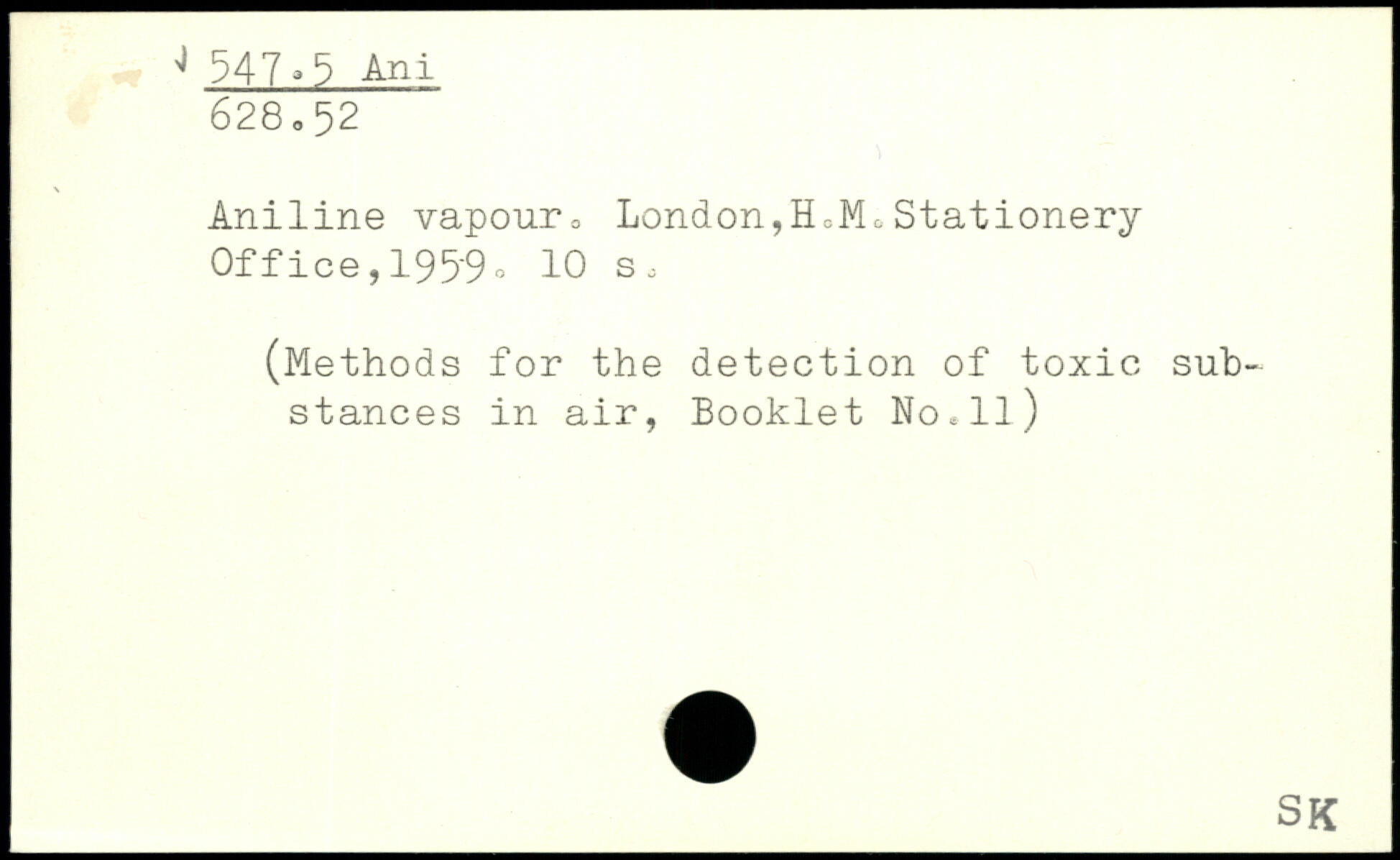 Aniline vapour. London,H=M.Stationery Office,1959o