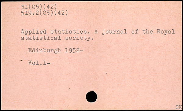 Applied statistics. A journal of the Royal statistical society. Edinburgh 1952-. Vol.l-