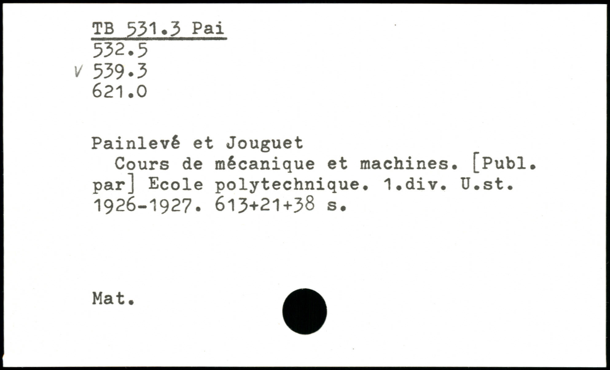 Cours de mécanique et machines. [Publ. par] Ecole polytechnique. I.div. ü.st. 1926-1927.