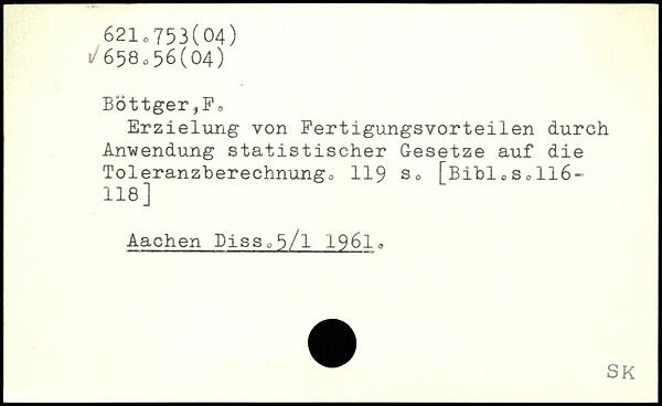 Erzielung von Fertigungsvorteilen durch Anwendung statistischer Gesetze auf die Toleranzberechnungo