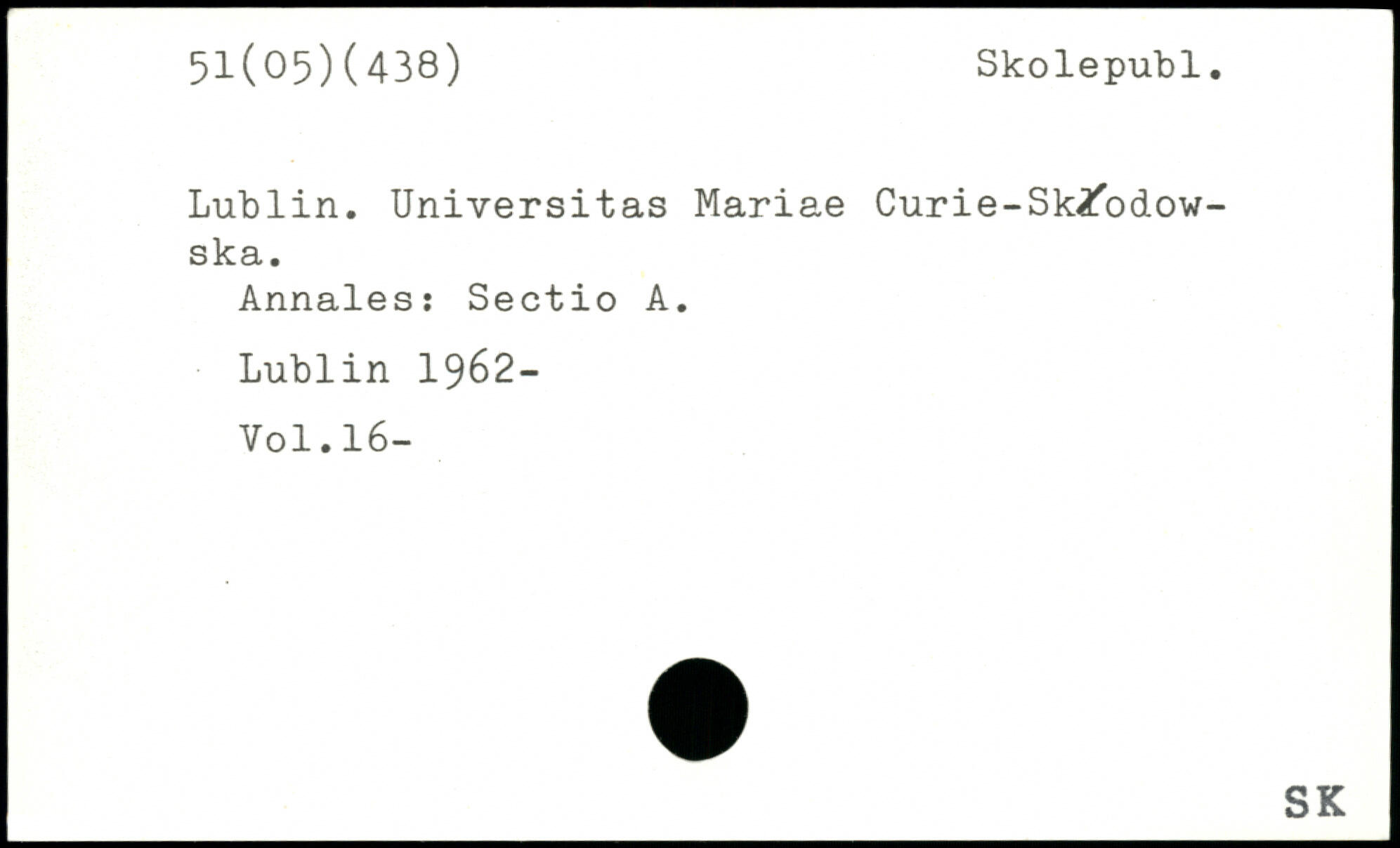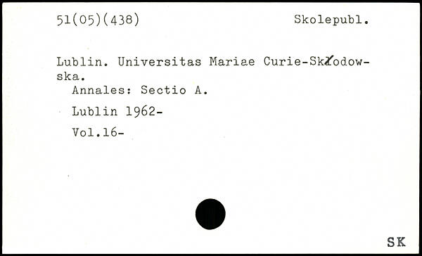 Lublin. Universitas Mariae Curie-Sk^odow-ska. Annales: Sectio A. Lublin 1962-