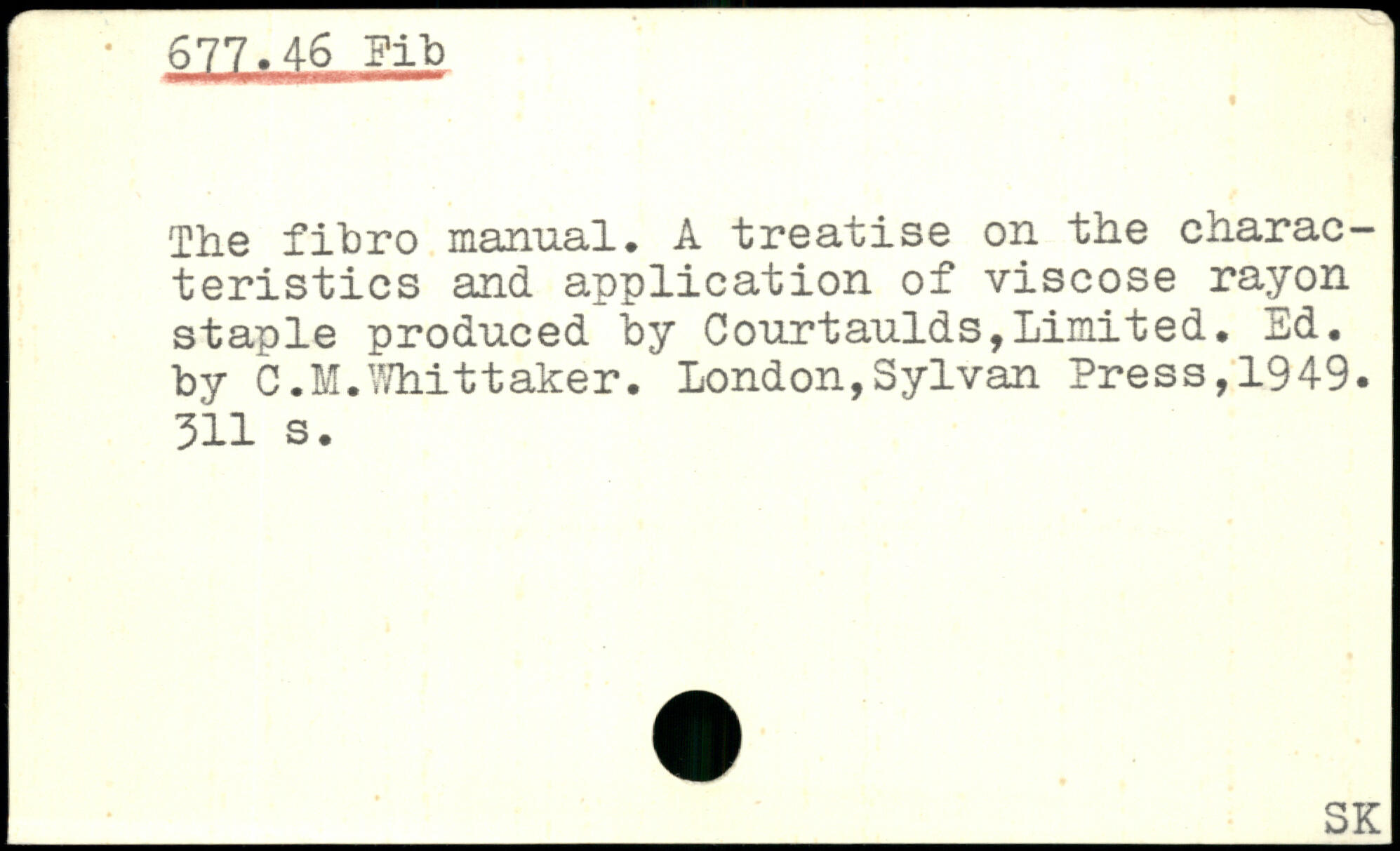 Tiie fibro manual. A treatise on the characteristics and application of viscose rayon staple produced by Courtaulds,Limited. Ed. by C.M.Whittaker.
