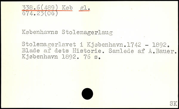 Københavns Stol emage ri au g Stolemagerlavet i Kjøbenhavn.1742 - 1892. Blade af dets Historie. Samlede af A.Bauer. Kjøbenhavn 1892.