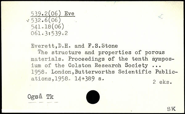 The structure and properties of porous materials. Proceedings of the tenth symposium of the Colston Research Society ... 1958.