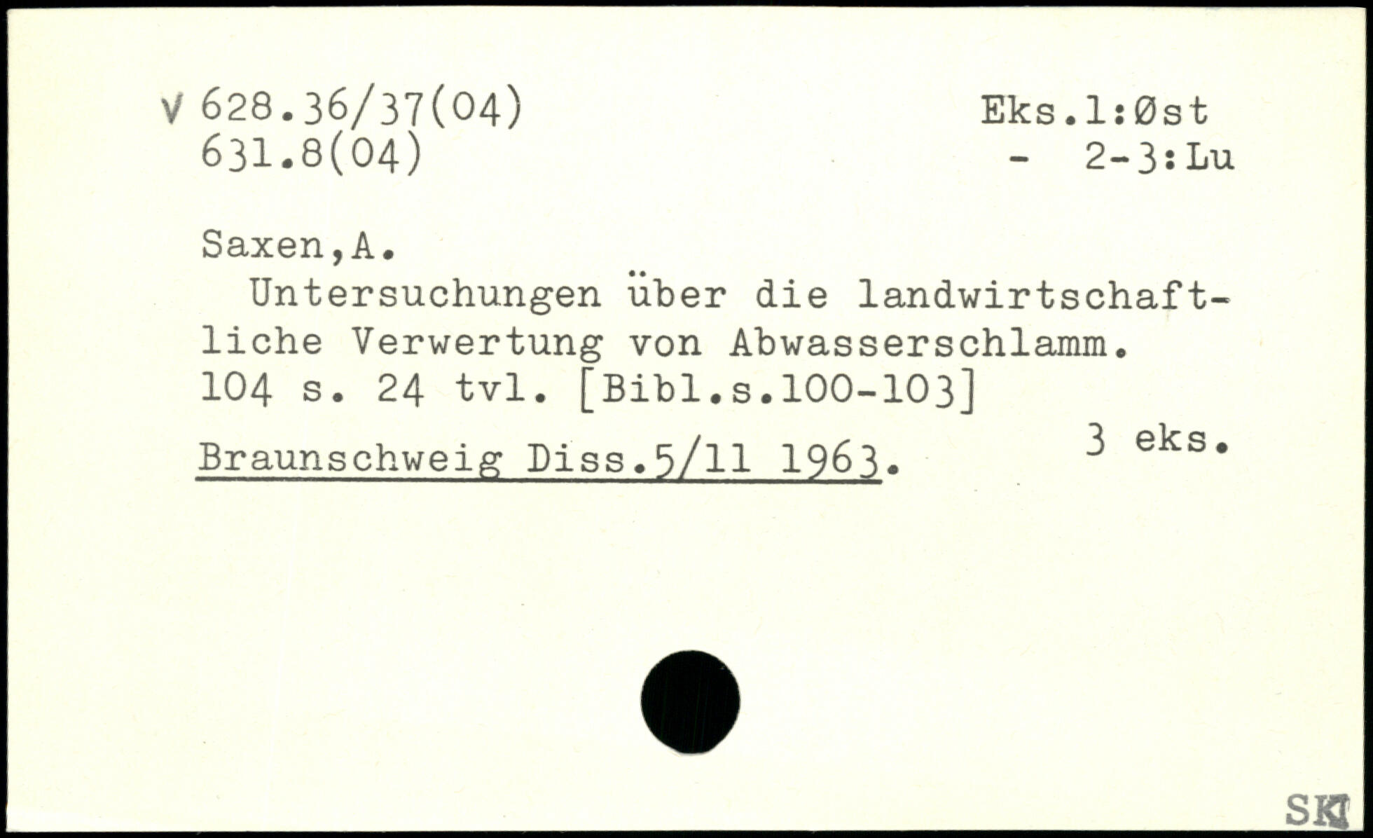 Untersuchungen über die landwirtschaftliche Verwertung von Abwasserschlamm.