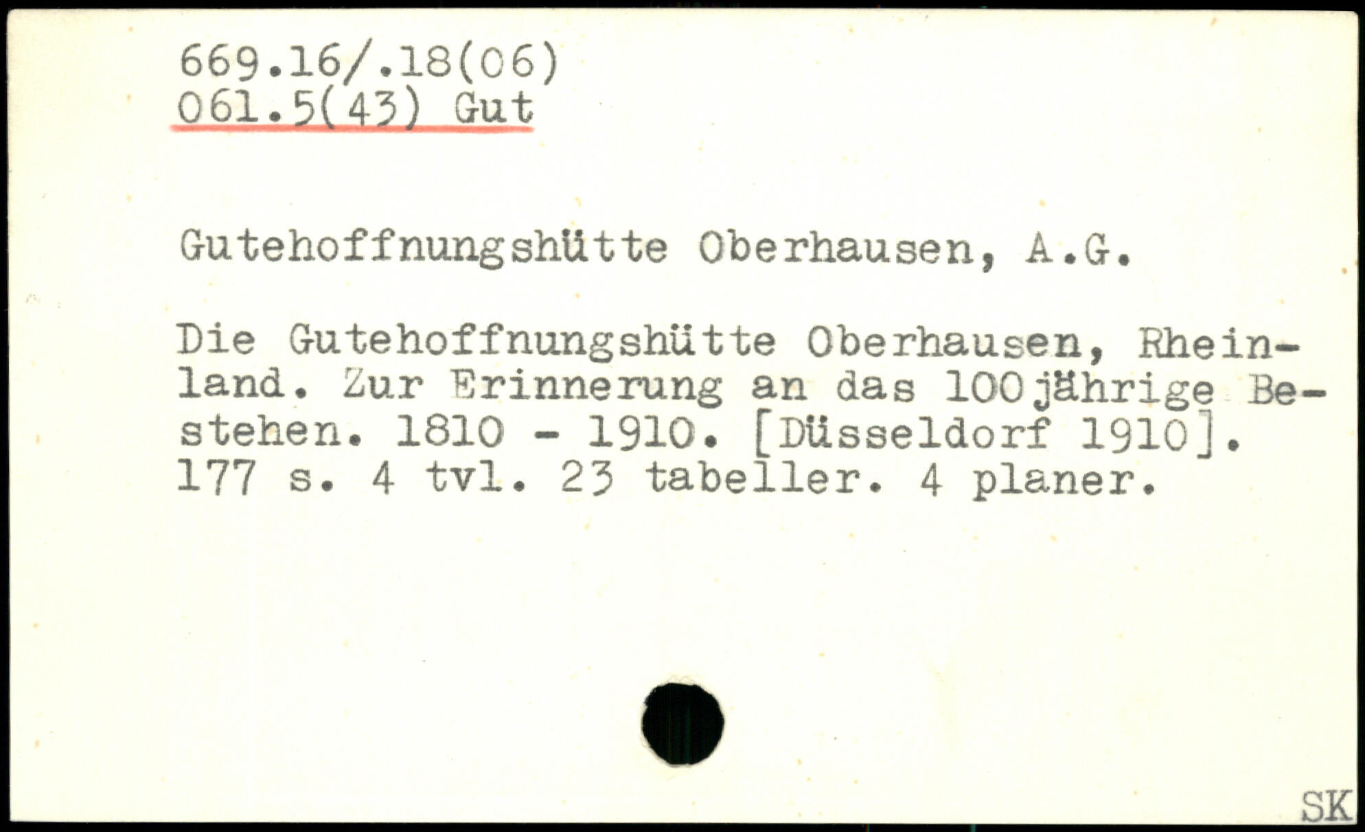 Outehoffnung shtitte Oberhausen, A.O. hie OutehoffnungshUtte Oberhausen, Rheinland. Zur Erinnerung an das 100jährige Bestehen. 1810 - 1910. [Düsseldorf 1910].
