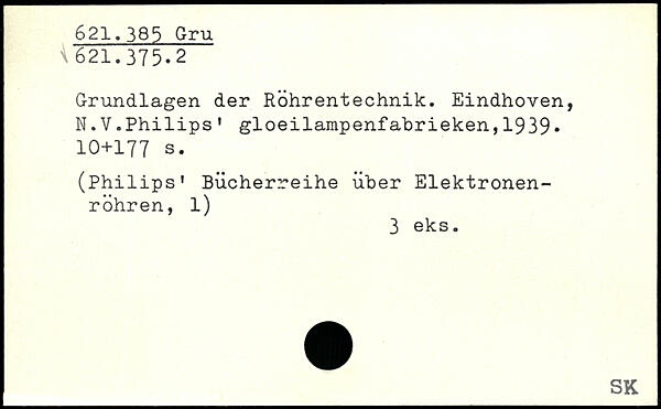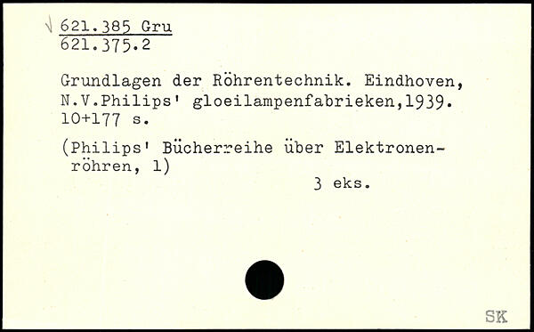 Grundlagen der Röhrentechnik. Eindhoven, N.V.Philips 1 gloeilampenfabrieken,1939.