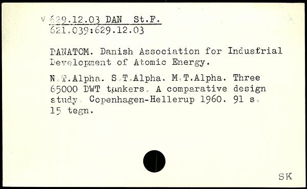 rAiTATCM. Danish Association for Industrial Development of Atomic Energy. NoT.Alpha. S T Alpha, M-T.Alpha. Three 6500O DWT tinkers, A comparative design study Copenhagen-Hellerup 1960.