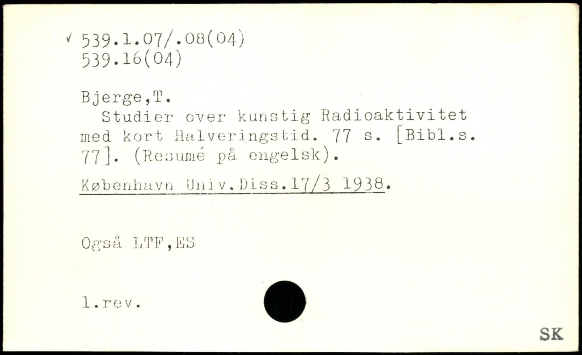Studier over kunstig Radioaktivitet med kort Halveringstid.