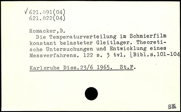 Die Temperaturverteilung im Schmierfilm konstant Belasteter Gleitlager. Theoretische Untersuchungen und Entwicklung eines Messverfahrens.