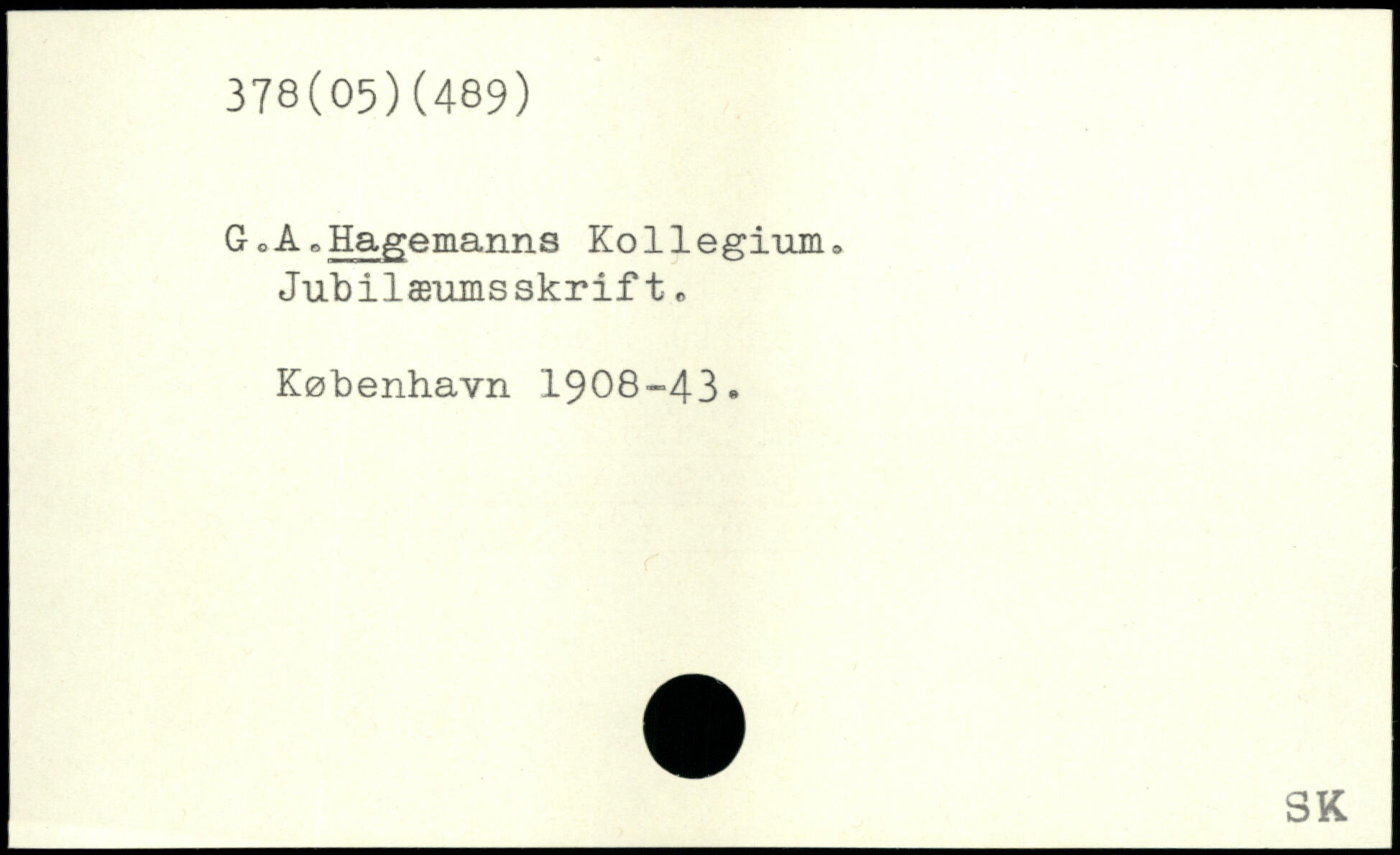 GcA,Hagemanns Kollegium® Jubilæums skrif t,