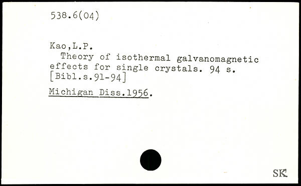 Theory of isothermal galvanomagnetic effects for single crystals.