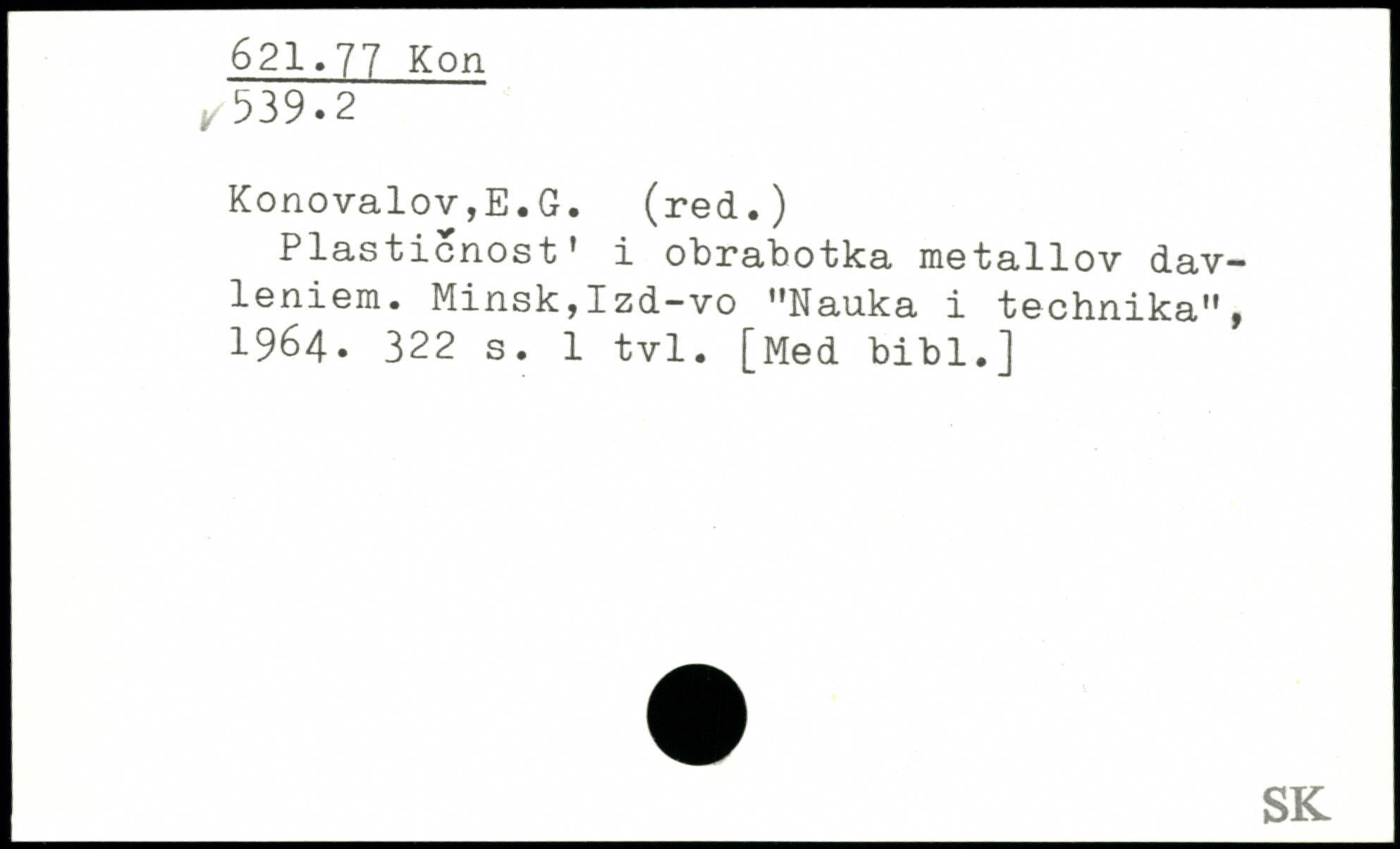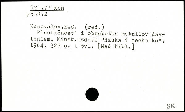 Plasticnost. i obrabotka raetallov dav-leniem. Minsk,Izd-vo "Nauka i technika", 1964.