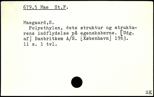 Polyethylen, dets struktur og strukturens indflydelse på egenskaberne. £Udg. afJ Danbritkem å/S.
