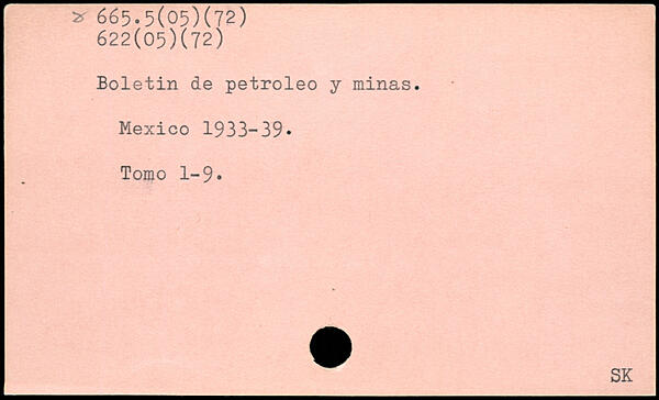 Boletin de petroleo y minas. Mexico 1933-39, Tomo 1-9